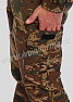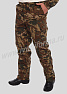 Брюки прямые с отрезным поясом, застегивающимся на одну обметанную петлю и пуговицу, с центральной застежкой-гульфик на молнии. На поясе шесть шлевок. Передние половинки брюк с двумя боковыми карманами с косым входом и двумя накладными карманами на липучках "Velcro".