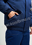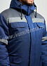 Куртка рабочая укороченная на поясе с центральной боровой застежкой на тесьму молнию, закрытую планкой на текстильной ленте велькро. Полочка состоит из двух частей, по линии стачивания которых настрочена светоотражающая лента шириной 50мм. На куртке два нагрудных накладных кармана с фигурным клапаном на текстильной ленте велькро. Два накладных боковых кармана с фигурным клапаном с соответствующей застежкой. Боковой карман имеет дополнительный карман. Наличие кармана внутри. Спинка состоит из двух частей, по линии стачивания которых настрочена светоотражающая лента шириной 50мм. На основной части спинки две складки. Рукав втачной одношовный. Низ рукава оформлен резинкой, внутри трикотажный манжет. Капюшон утепленный объемный с хомутом, пристегивается на молнию.